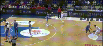 中国台北的三分也连续命中,35-35!——这个困难之后,中国队的前锋开始发力,朱俊龙三分命中,再度拉开分差。但是中国台北两个回合,又追平比分40-40!