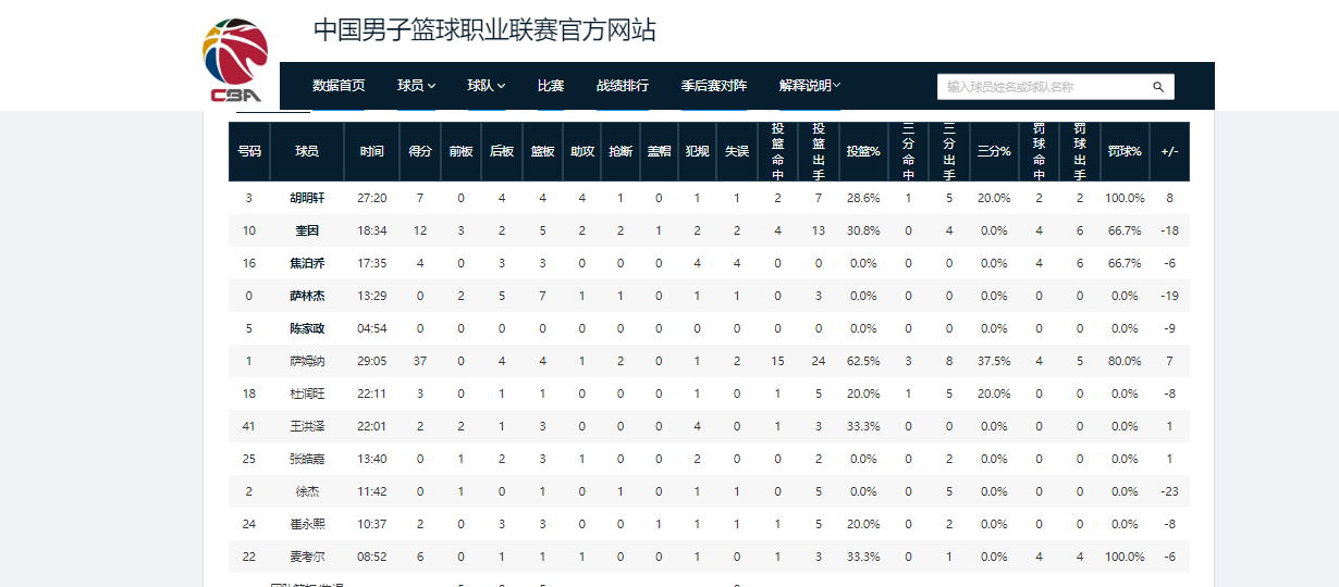 数据方面,广东队与辽宁队的篮板总数比为40-49,助攻总数比为10-26,三分命中率比则为15.6%-39.3%,广东队全方位落后。