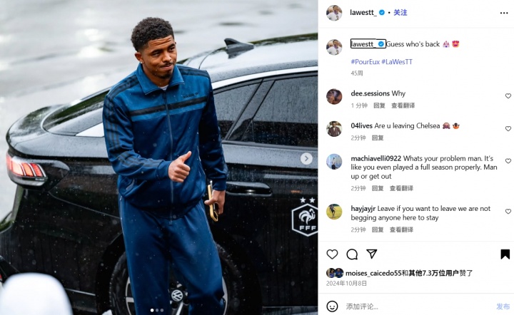 👀啥情况?韦斯利-福法纳删除了社媒上所有切尔西相关的内容